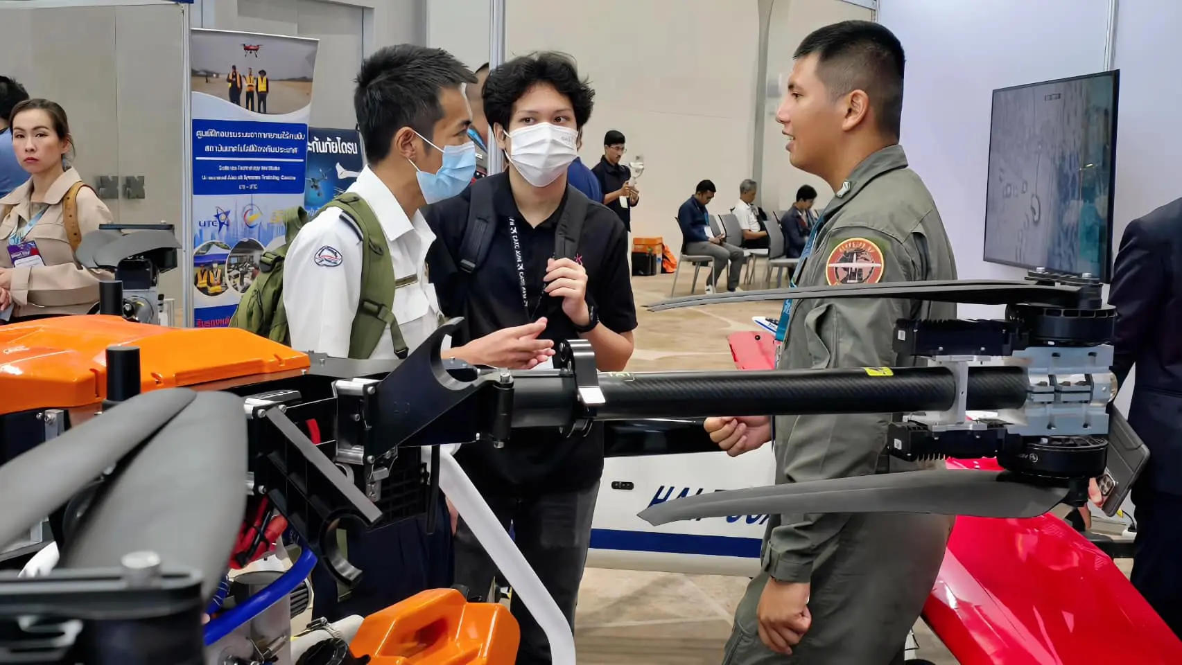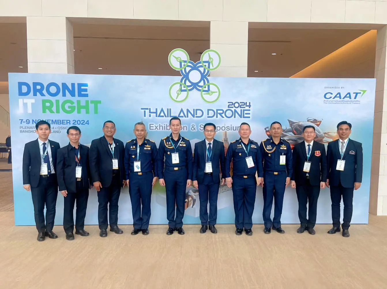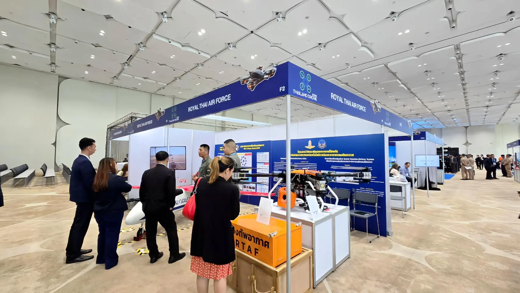 กองทัพอากาศ โดย กองบิน 3 ร่วมกับ ศูนย์การฝึกอากาศยานไร้คนขับกองทัพอากาศ (RTAF-UTC) และศูนย์วิจัยพัฒนาวิทยาศาสตร์เทคโนโลยีการบินและอวกาศ กองทัพอากาศ (ศวอ.ทอ.) ร่วมจัดนิทรรศการอากาศยานไร้คนขับ ภายในงาน Thailand Drone Exhibition & Symposium 2024 ระหว่าง 7 - 9 พฤศจิกายน 2567 ณ ศูนย์การประชุมแห่งชาติสิริกิติ์ ทั้งนี้ เพื่อเผยแพร่ผลงานวิจัยและพัฒนาระบบอากาศยานไร้คนขับ และการพัฒนาระบบการฝึกอบรมผู้ปฏิบัติงานกับระบบอากาศยานไร้คนขับของกองทัพอากาศ และในโอกาสนี้ พลอากาศเอก เสกสรร คันธา ผู้ช่วยผู้บัญชาการทหารอากาศ ได้ให้เกียรติเยี่ยมชมบูธจัดนิทรรศการของกองทัพอากาศและร่วมกิจกรรมภายในงาน