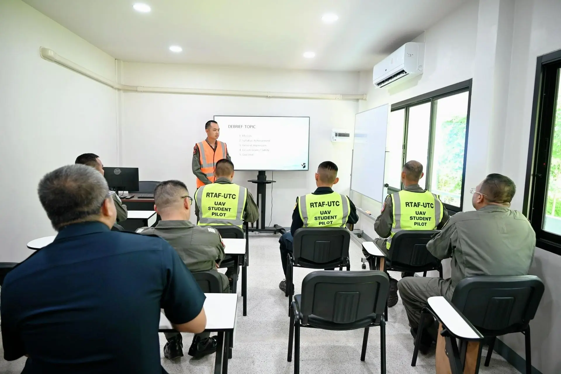 เมื่อวันที่ 12-13 มีนาคม 2568 ศูนย์การฝึกอากาศยานไร้คนขับกองทัพอากาศ ได้สาธิตการปฏิบัติการฝึกบินด้วยอากาศยานไร้คนขับ ตามกระบวนการและขั้นตอนมาตรฐานของศูนย์การฝึกอากาศยานไร้คนขับกองทัพอากาศ ซึ่งประกอบด้วย 1. การจัดบิน 2. การแถลงย่อรวม (Class Brief) 3. การแถลงย่อระหว่างครูและศิษย์การบิน (Flight Brief) 4. การเตรียมอากาศยานไร้คนขับ (Drone) สำหรับการฝึกบิน 5. การฝึกบินทั้งการบินปกติ (Nornal) และการบินในสภาวะฉุกเฉิน (Emergencies) 6. การตรวจสอบและส่งคืนอากาศยานไร้คนขับ (Drone) หลังทำการบิน 7. การแถลงย่อหลังทำการบินระหว่างครูและศิษย์การบิน (Flight De-brief) 8. การแถลงย่อรวมหลังทำการบิน (Classs De-brief)โดยมี พลอากาศตรี วุฒิ น้อยเชี่ยวกาญจน์ ผู้อำนวยการสำนักงานการบินกองทัพอากาศ (MAA) ในฐานะหัวหน้าคณะตรวจรับรองสถาบันการฝึกอบรมอากาศยานไร้คนขับ (UATO) พร้อมคณะฯ ร่วมสังเกตการณ์และให้ข้อเสนอแนะ เพื่อนำไปปรับปรุงและพัฒนาให้มีมาตรฐานที่ดียิ่งขึ้นต่อไป
